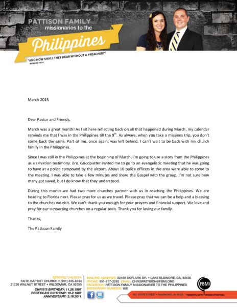 View Larger Image Chris Pattison March 2015 Prayer Letter Proofreader2015-04-02T15:05:23-05:00April 2nd, 2015| Share with others. FacebookXLinkedInEmail