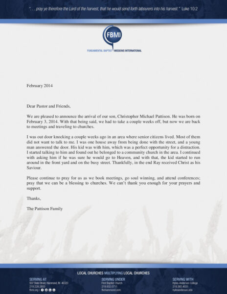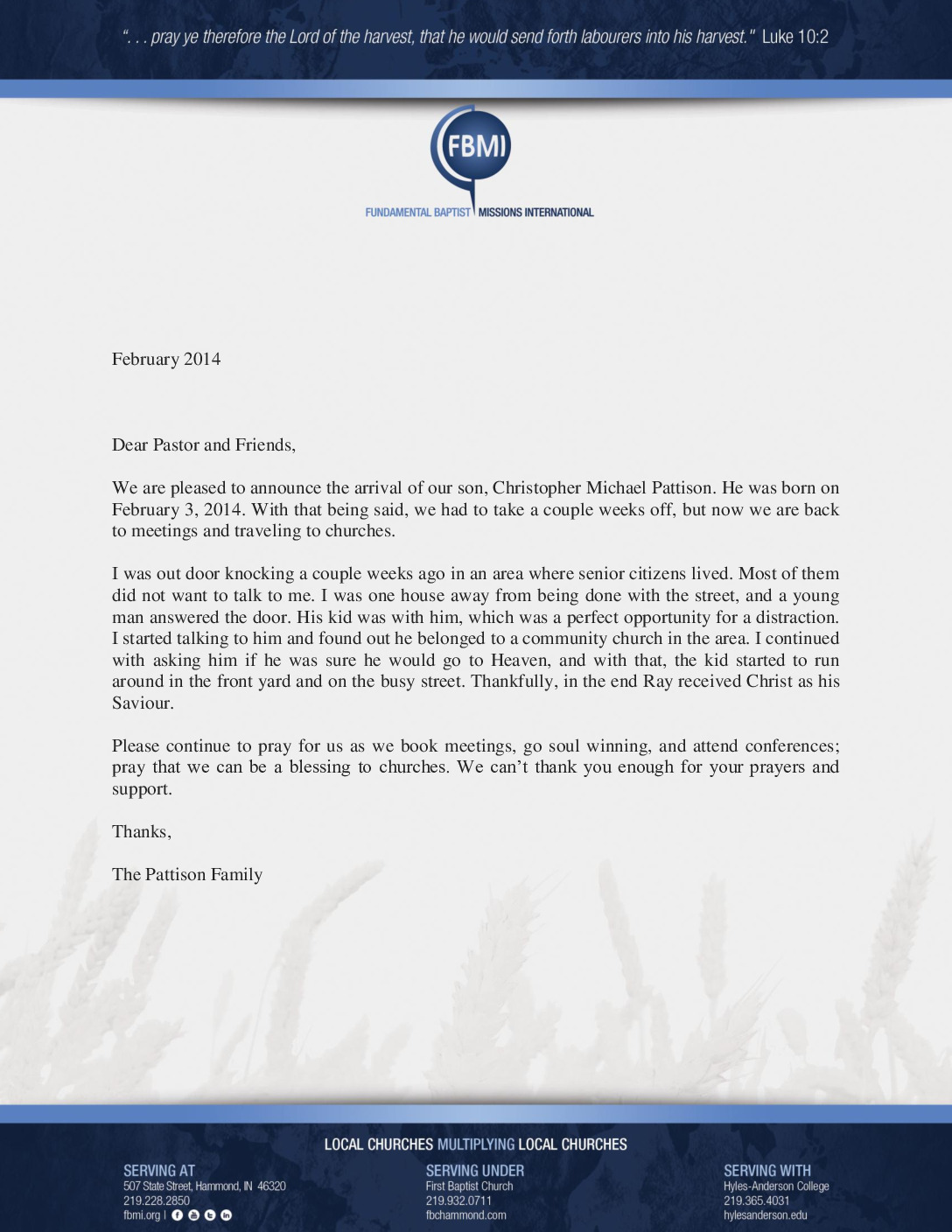 View Larger Image February 2014 Prayer Letter on FBMI Letterhead Proofreader2014-03-07T16:52:42-06:00March 7th, 2014| Share with others. FacebookXLinkedInEmail