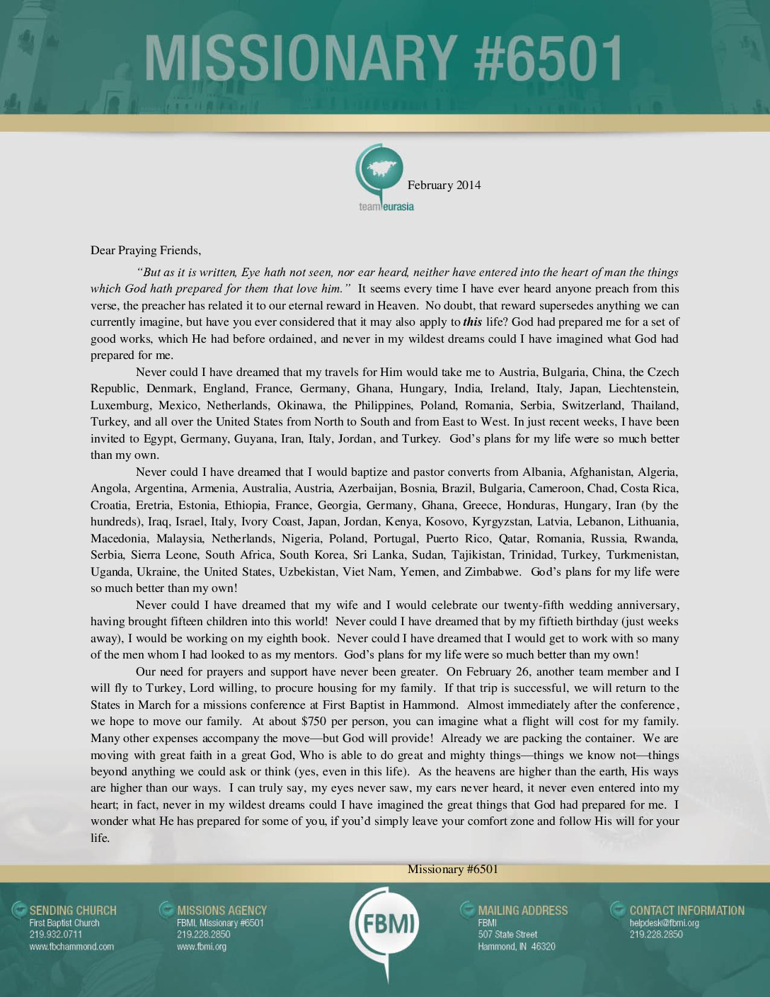 Get any FBMI missionary's prayer letters emailed to you, or get all prayer letters daily or weekly.