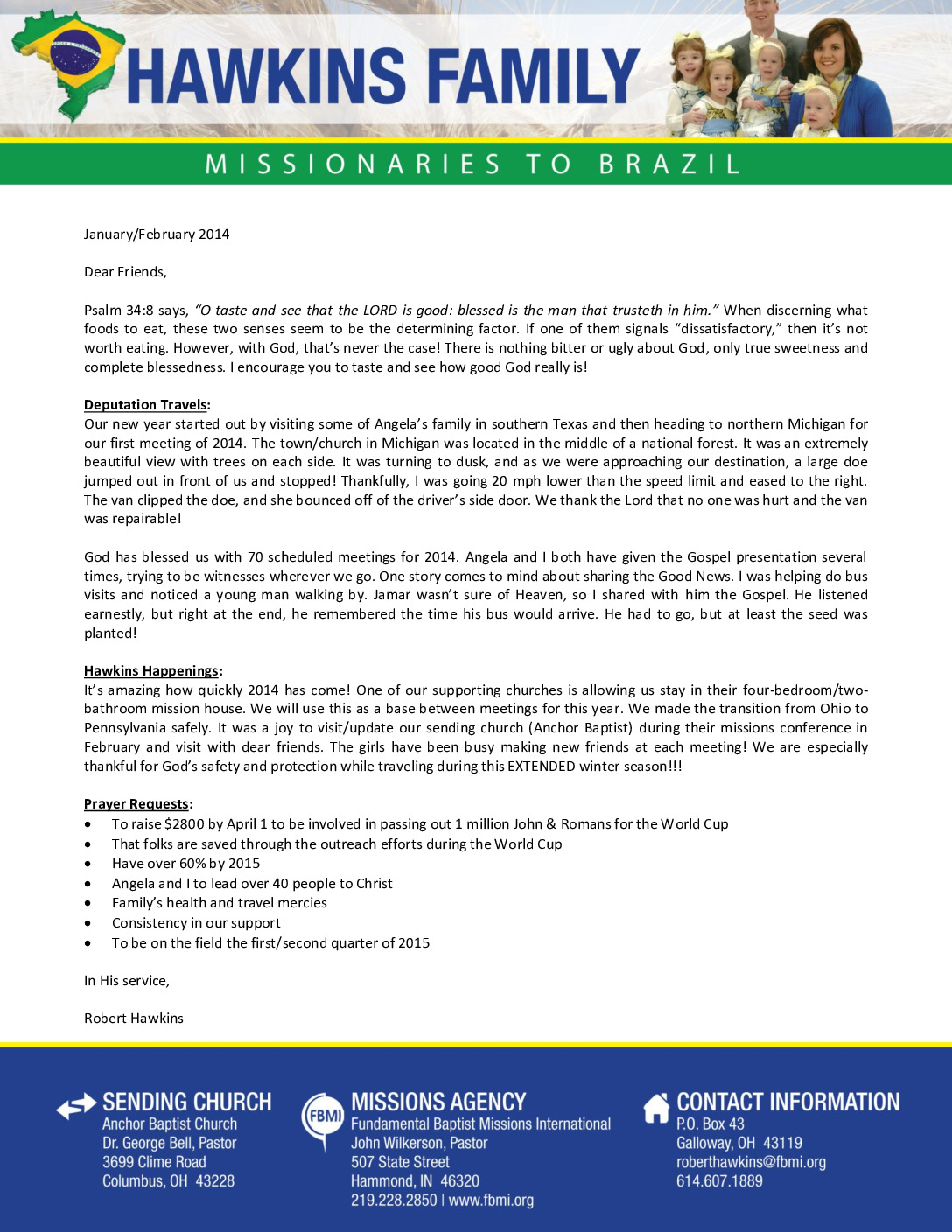 View Larger Image Jan-Feb 2014 Prayer Letter on Letterhead Proofreader2014-03-18T21:09:19-05:00March 18th, 2014| Share with others. FacebookXLinkedInEmail