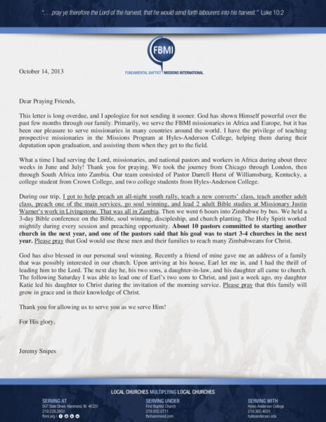 • View Larger Image thumbnail of Jeremy Snipes October 2014 Prayer Letter