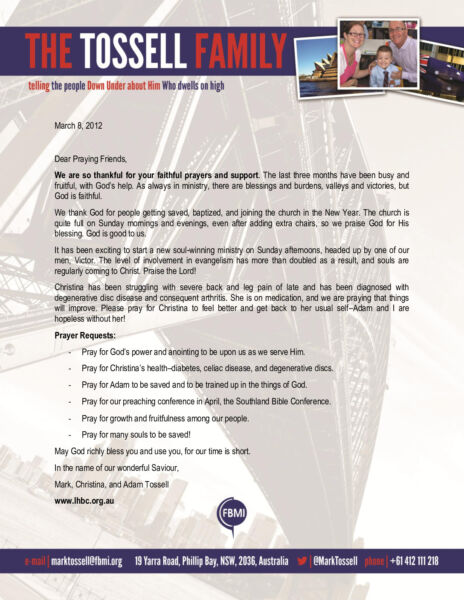 View Larger Image Mark Tossell March 2012 Prayer Letter Proofreader2015-03-05T21:26:27-06:00March 5th, 2015| Share with others. FacebookXLinkedInEmail