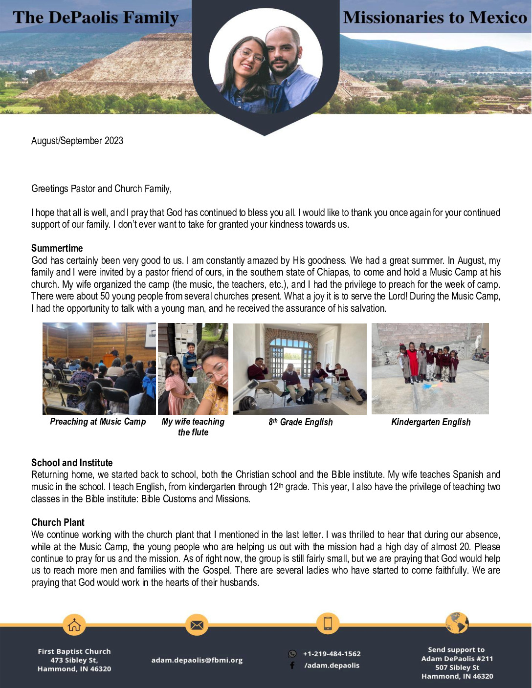 View Larger Image Adam DePaolis Aug-Sep 2023 Prayer Letter Proofreader2023-10-05T15:21:51-05:00October 5th, 2023| Share with others. FacebookXLinkedInEmail