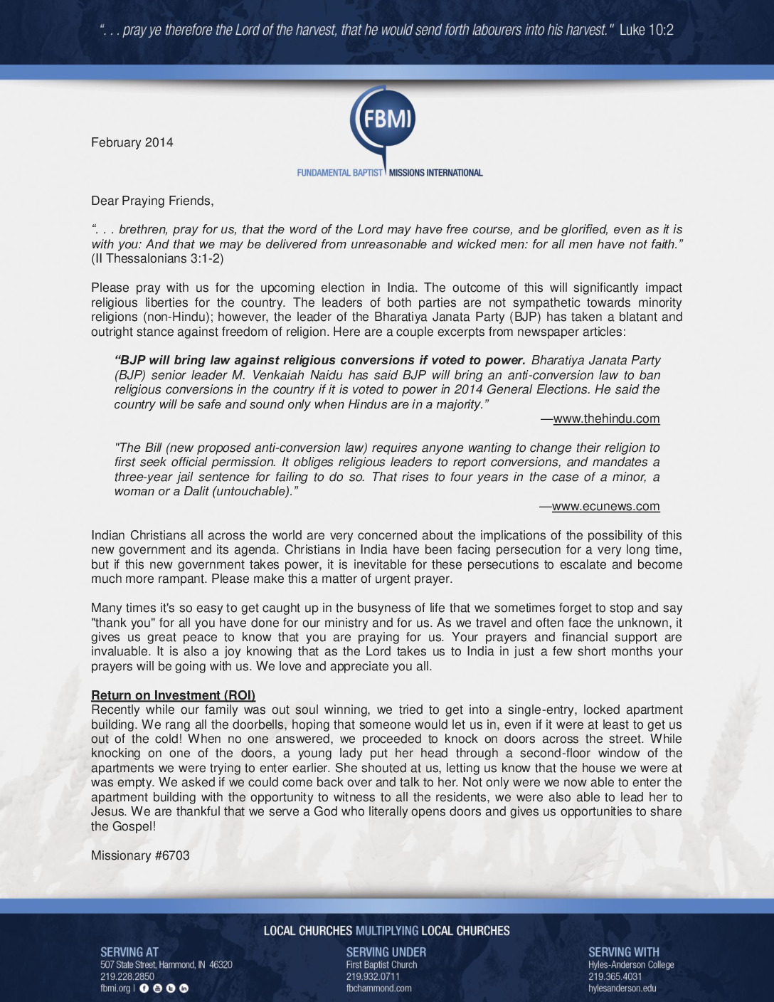 View Larger Image February 2014 Prayer Letter on FBMI Letterhead Proofreader2014-02-11T09:49:44-06:00February 11th, 2014| Share with others. FacebookXLinkedInEmail