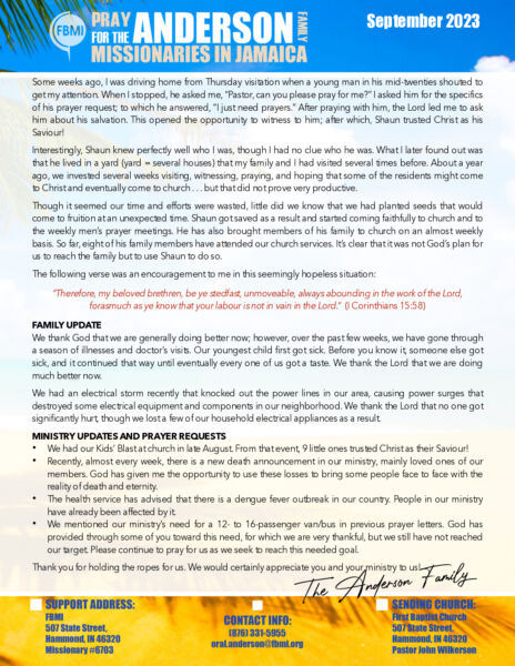 View Larger Image For Emailing Oral Anderson September 2023 Prayer Letter Proofreader2023-10-21T12:10:07-05:00October 21st, 2023| Share with others. FacebookXLinkedInEmail