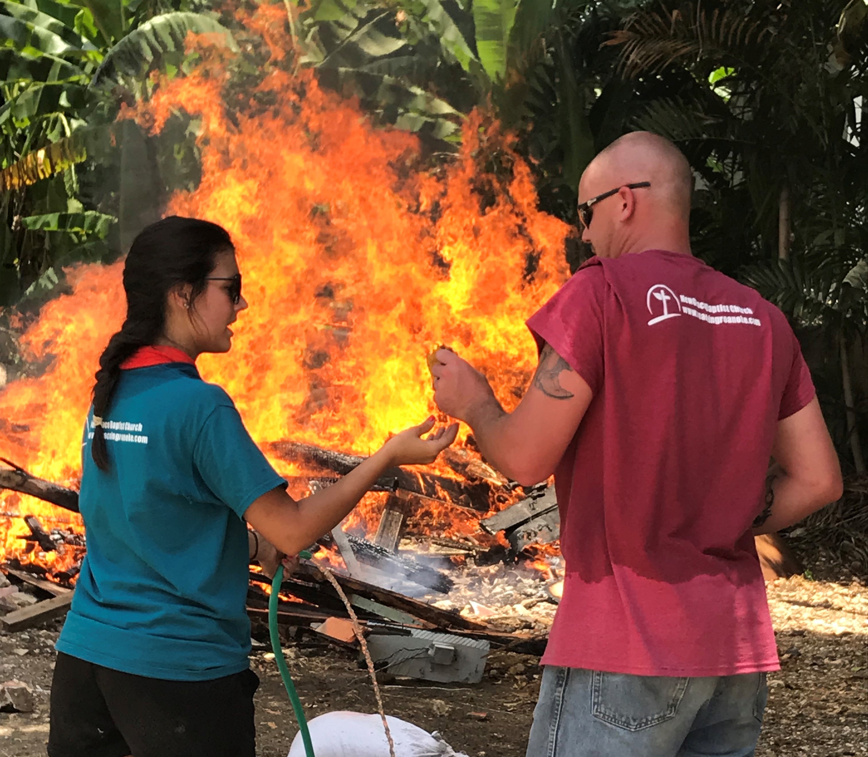 A team from the New Grace Baptist Church in Virginia recently visited us. They helped us with the demolition of an old, dilapidated, termite-ridden, bug-infested building that was on our church property. After the demolition work, we started a fire to burn the remains of the building. What we thought was going to be a simple task almost turned out to be a major disaster!