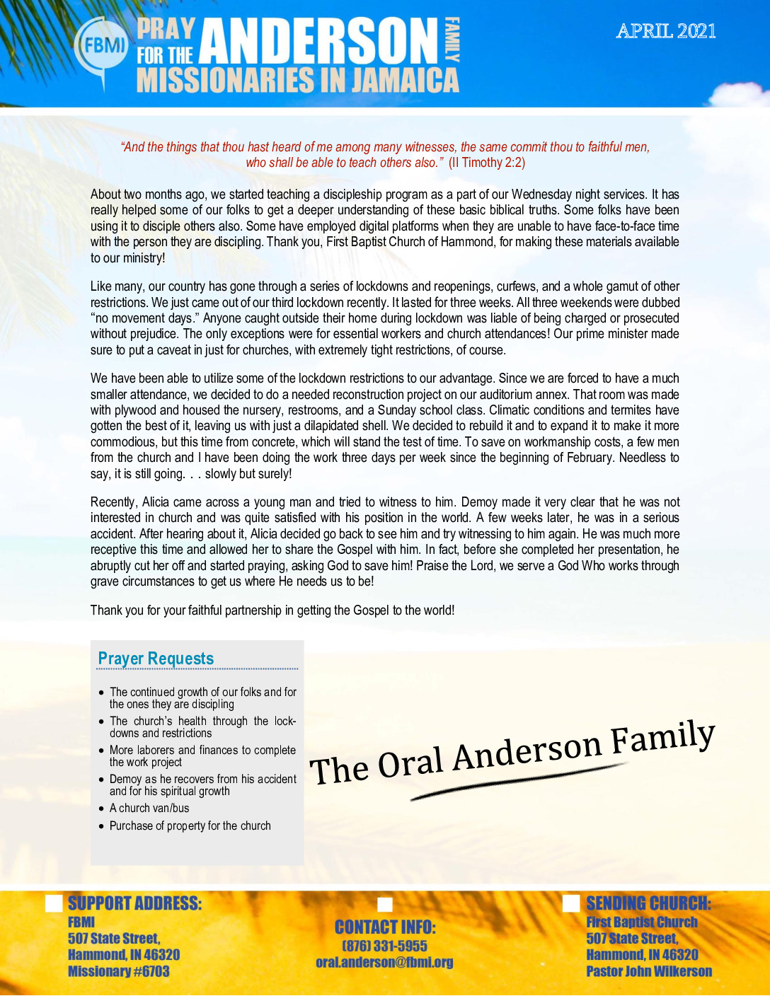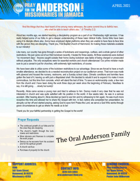 View Larger Image Oral Anderson April 2021 Prayer Letter Proofreader2021-05-13T13:56:32-05:00May 13th, 2021| Share with others. FacebookXLinkedInEmail