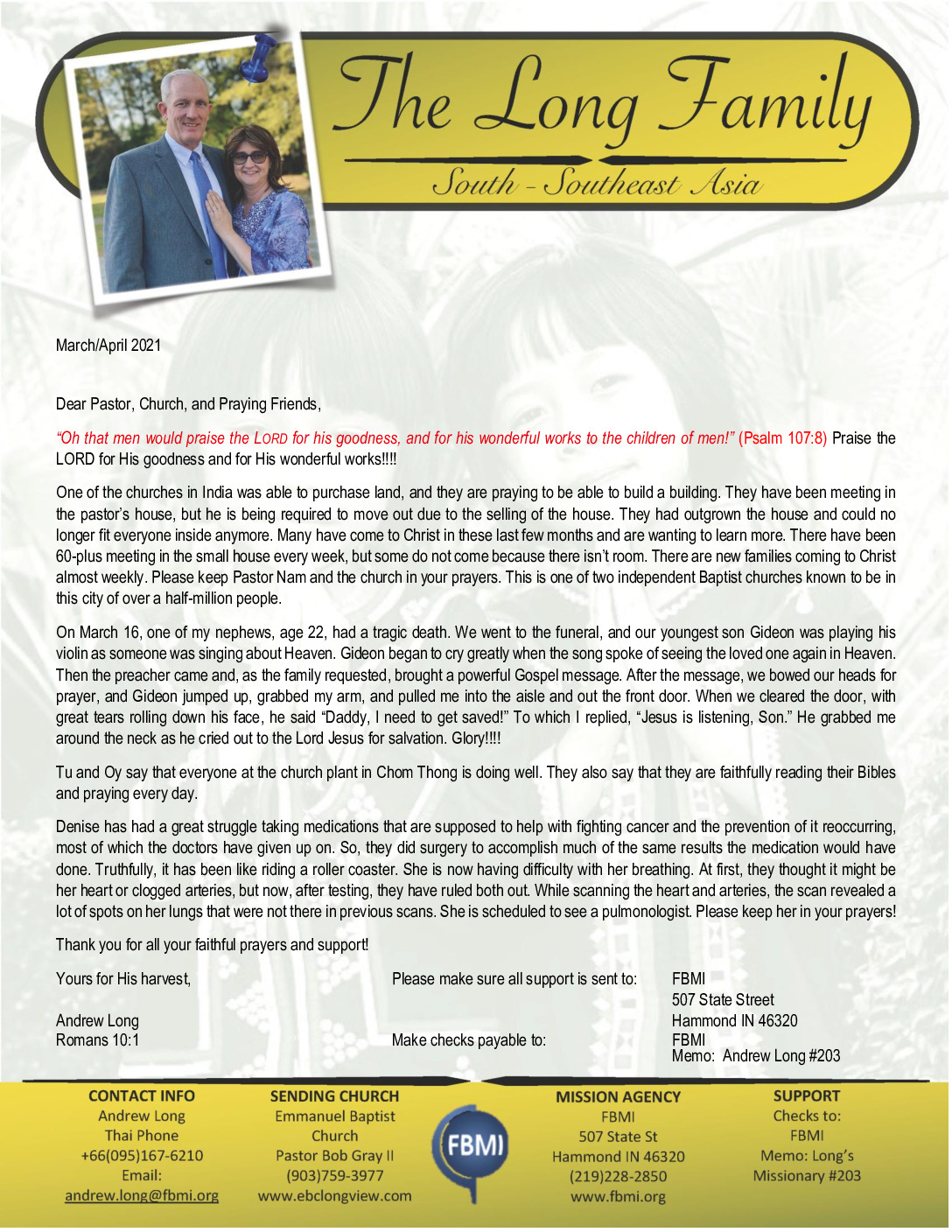 View Larger Image Andrew Long Mar-Apr 2021 Prayer Letter Proofreader2021-05-09T14:01:55-05:00May 9th, 2021| Share with others. FacebookXLinkedInEmail