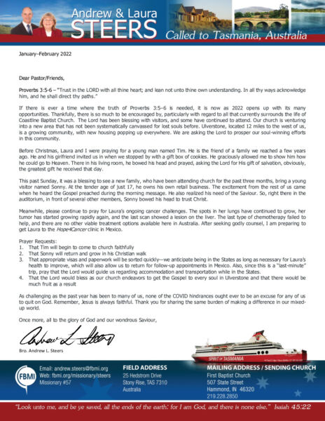 View Larger Image Andrew Steers Jan-Feb 2022 Prayer Letter – Revised Proofreader2022-02-11T17:17:33-06:00February 11th, 2022| Share with others. FacebookXLinkedInEmail