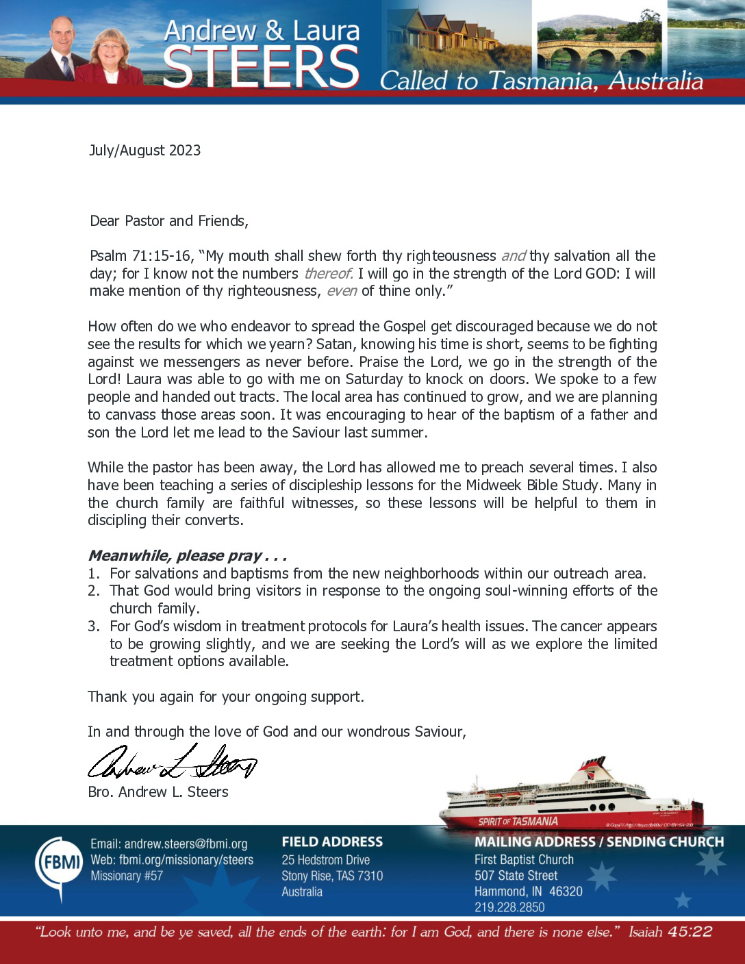 View Larger Image Andrew Steers Jul-Aug 2023 Prayer Letter Proofreader2023-08-16T15:25:53-05:00August 16th, 2023| Share with others. FacebookXLinkedInEmail