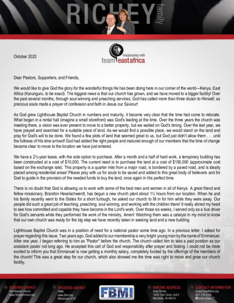 View Larger Image Andy Richey October 2023 Prayer Letter Proofreader2023-10-12T20:16:23-05:00October 12th, 2023| Share with others. FacebookXLinkedInEmail