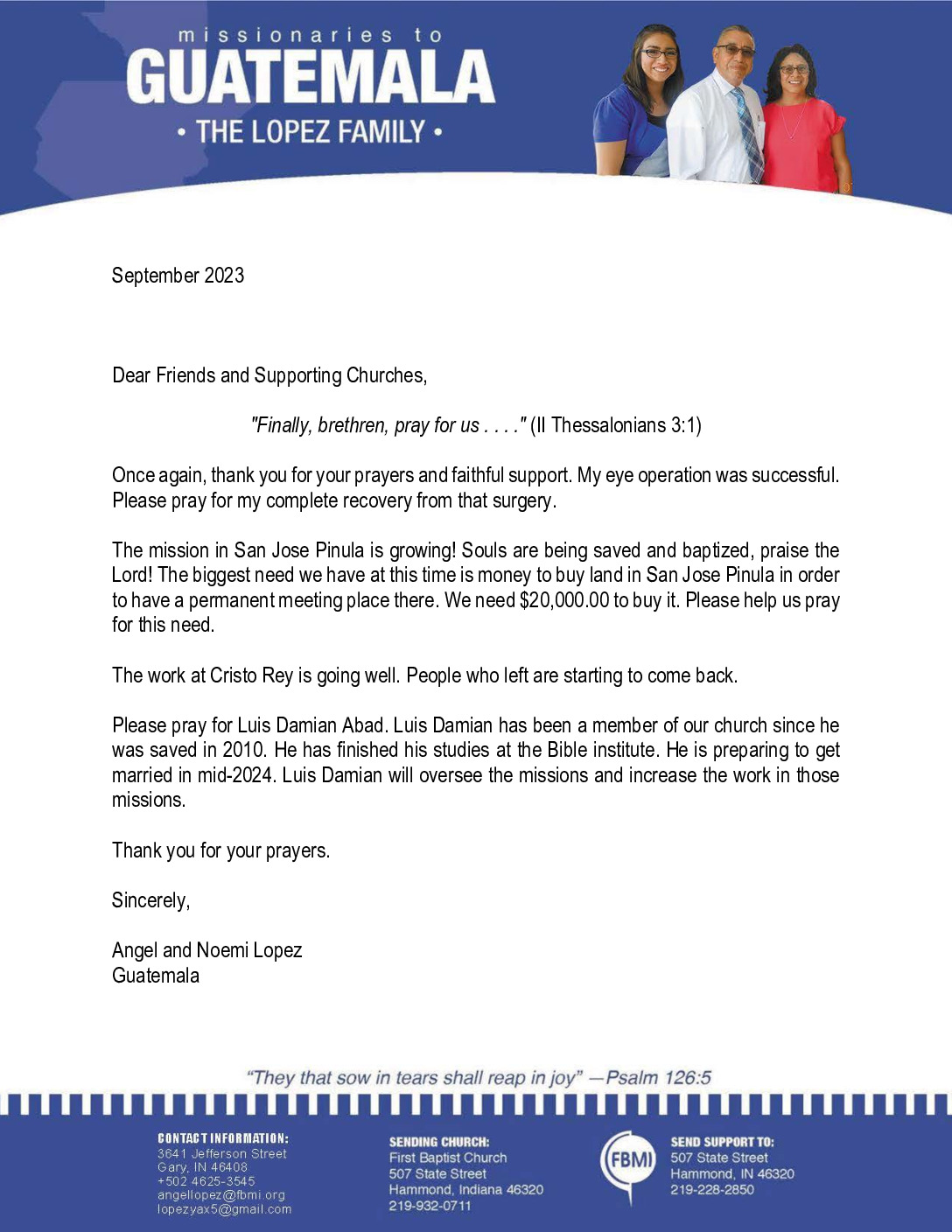 View Larger Image Angel Lopez September 2023 ENGLISH Prayer Letter – Revised Proofreader2023-09-06T17:08:47-05:00September 6th, 2023| Share with others. FacebookXLinkedInEmail