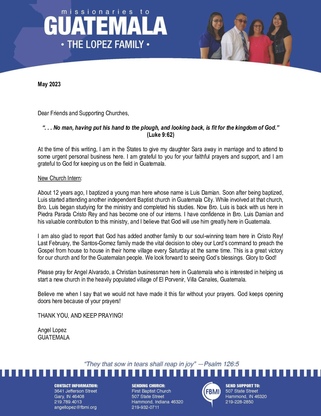 View Larger Image Angel Lopez May 2023 ENGLISH Prayer Letter Proofreader2023-05-01T20:29:22-05:00May 1st, 2023| Share with others. FacebookXLinkedInEmail