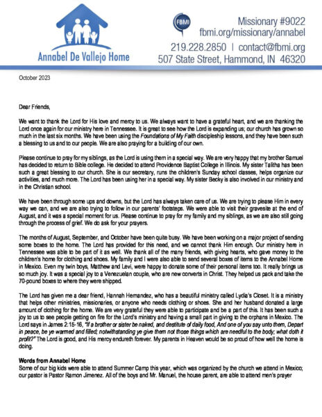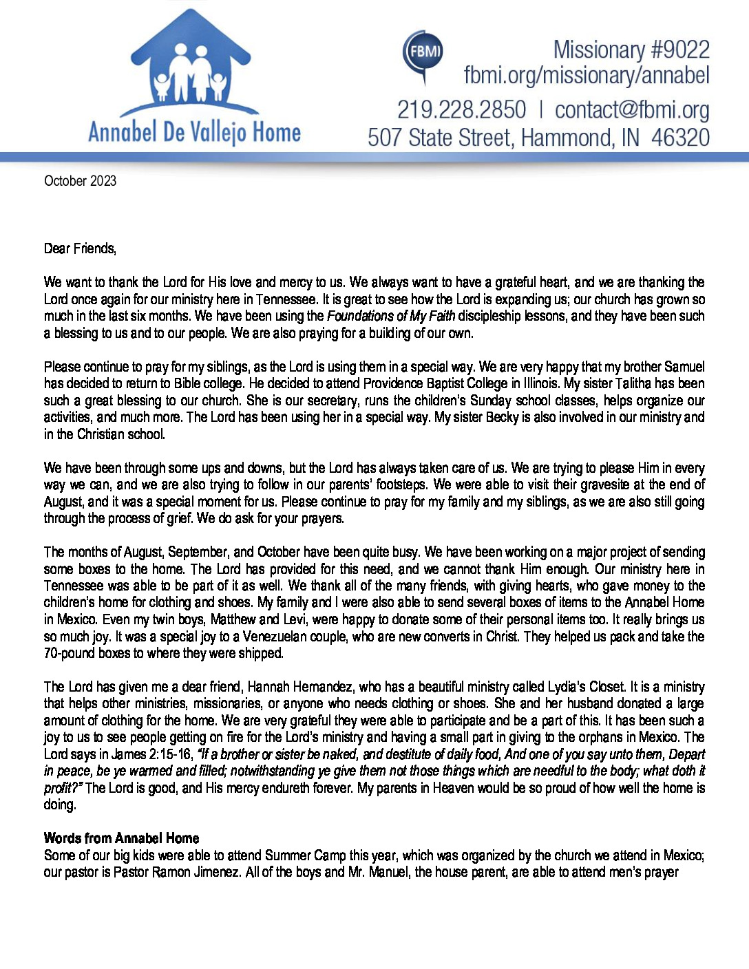 View Larger Image Annabel de Vallejo Children’s Home October 2023 Update Proofreader2023-10-18T17:28:20-05:00October 18th, 2023| Share with others. FacebookXLinkedInEmail