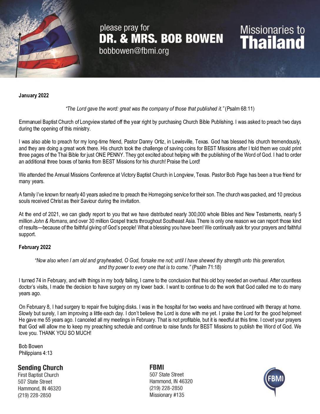 View Larger Image Bob Bowen Jan-Feb 2022 Prayer Letter Proofreader2022-04-09T23:38:05-05:00April 9th, 2022| Share with others. FacebookXLinkedInEmail