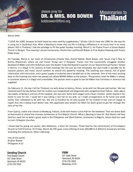 View Larger Image Bob Bowen March 2014 Prayer Letter Proofreader2015-01-23T19:57:36-06:00January 23rd, 2015| Share with others. FacebookXLinkedInEmail