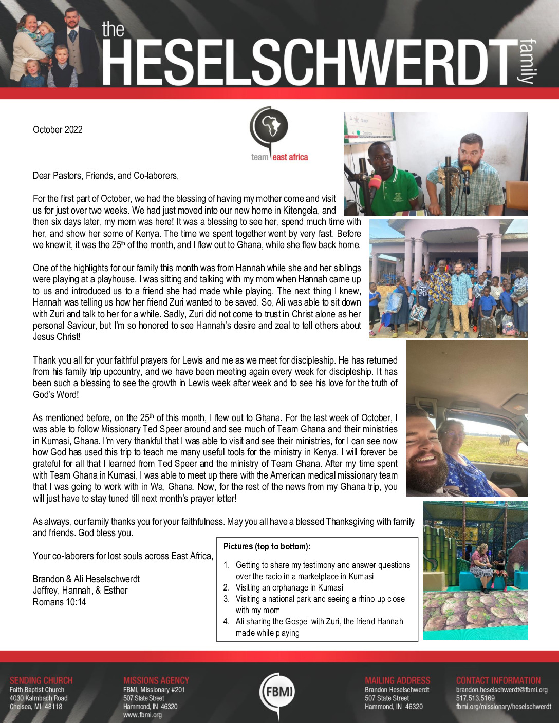 View Larger Image Brandon Heselschwerdt October 2022 ENGLISH Prayer Letter – Revision Proofreader2022-11-25T21:49:57-06:00November 25th, 2022| Share with others. FacebookXLinkedInEmail