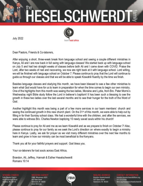 View Larger Image Brandon Heselschwerdt July 2022 Prayer Letter Proofreader2022-08-17T11:40:32-05:00August 17th, 2022| Share with others. FacebookXLinkedInEmail