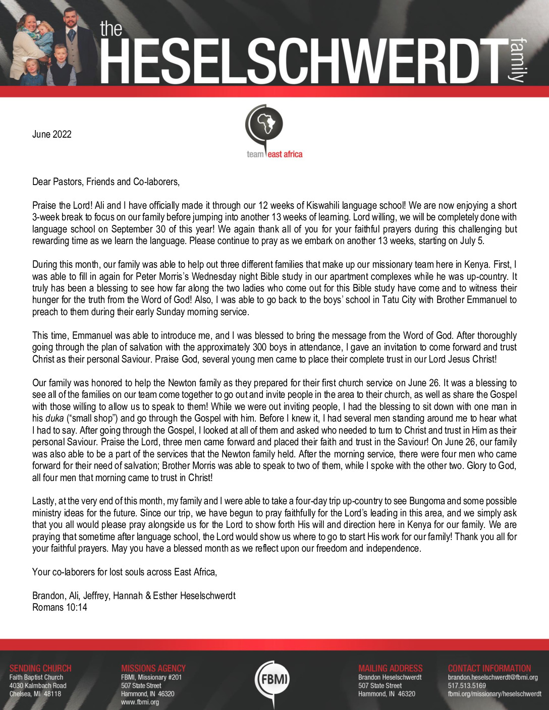 View Larger Image Brandon Heselschwerdt June 2022 Prayer Letter – Revised Proofreader2022-07-21T22:27:39-05:00July 21st, 2022| Share with others. FacebookXLinkedInEmail