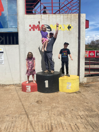 - • Celebrating the kids’ birthdays—Essie and I won in go-kart racing!