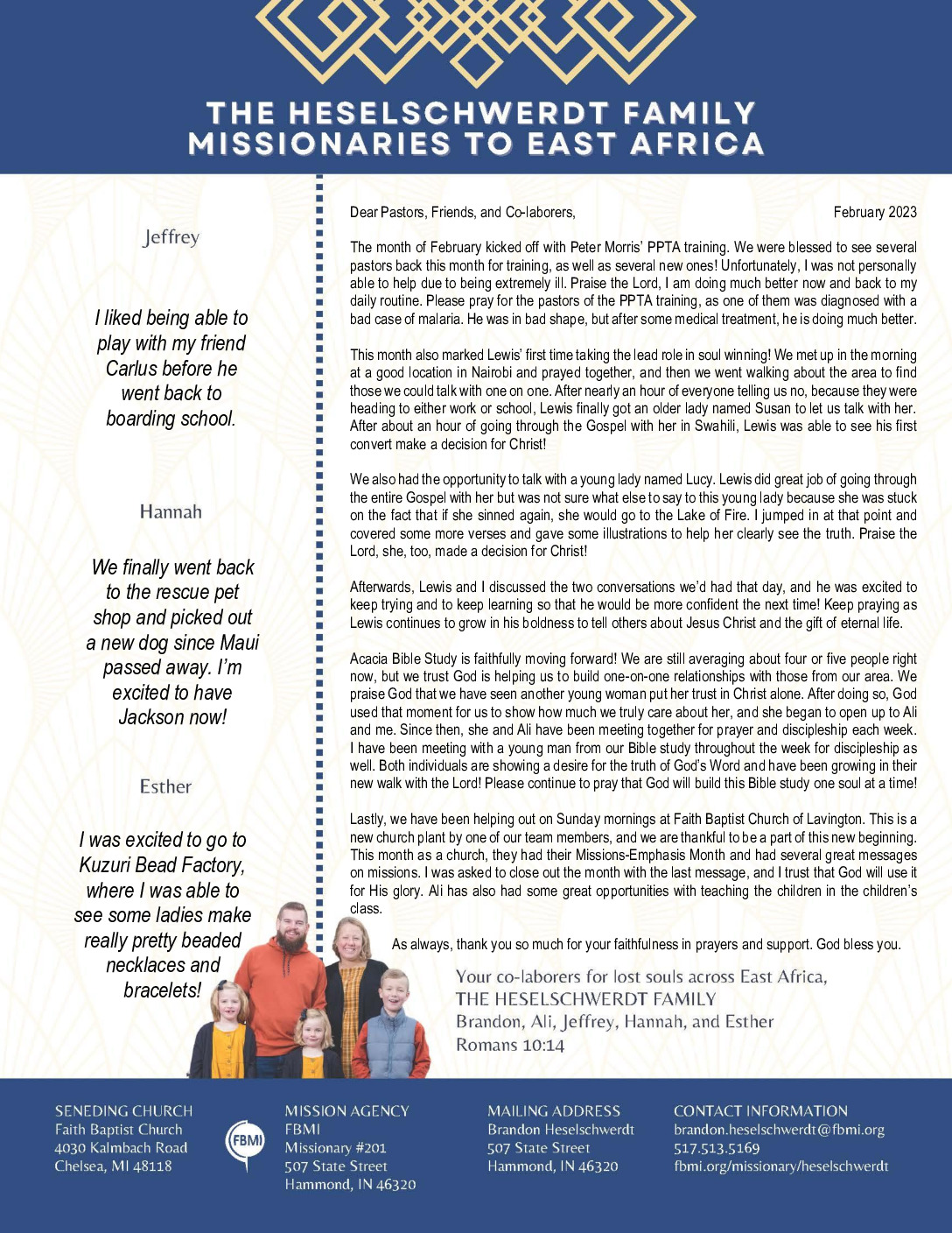 Brandon Heselschwerdt February 2023 Prayer Letter