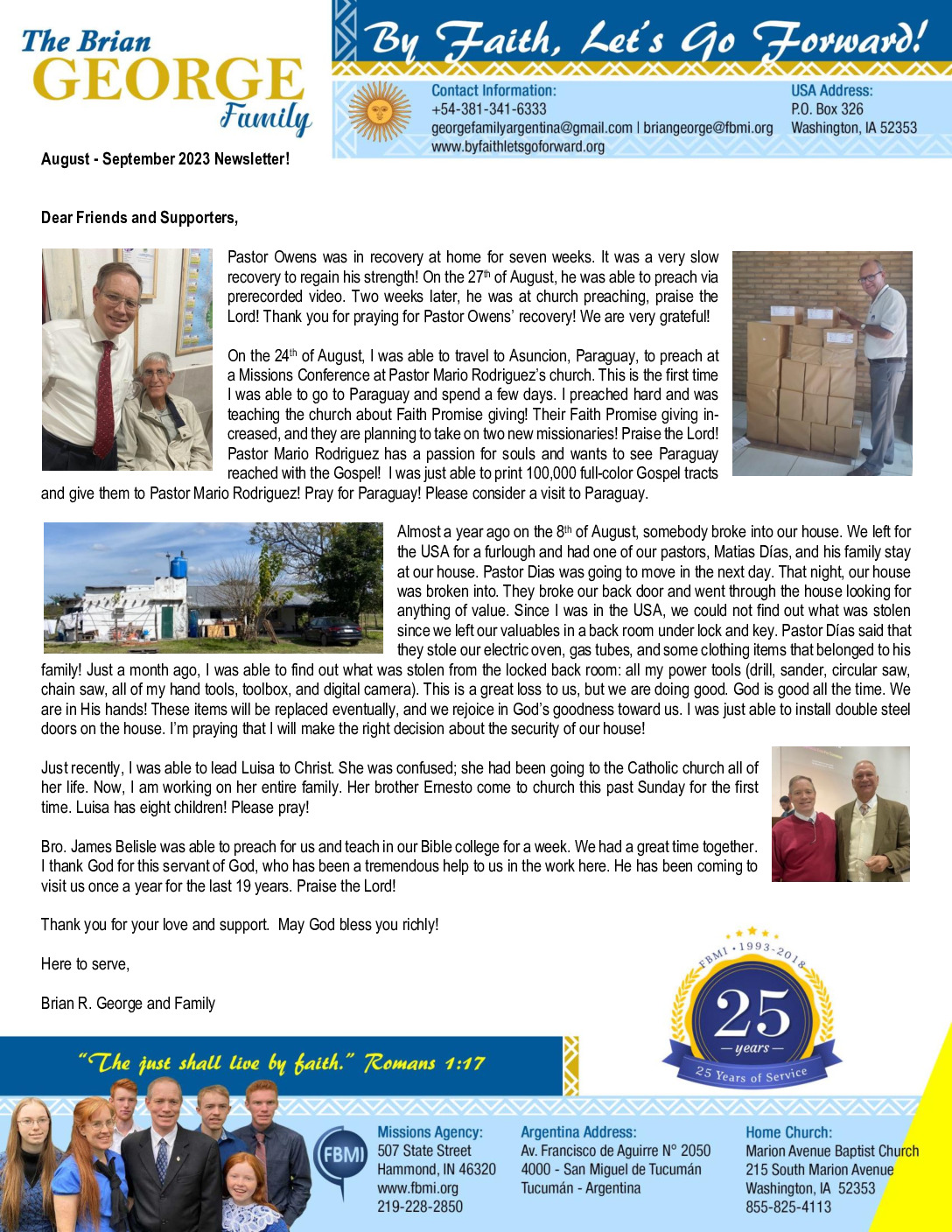 Brian George Aug-Sep 2023 Prayer Letter – Revised