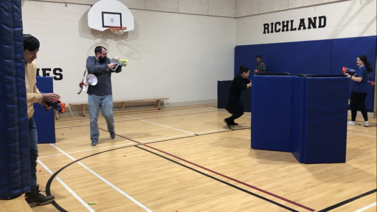 - Homemade Nerf arena for teens’ Nerf Wars activity