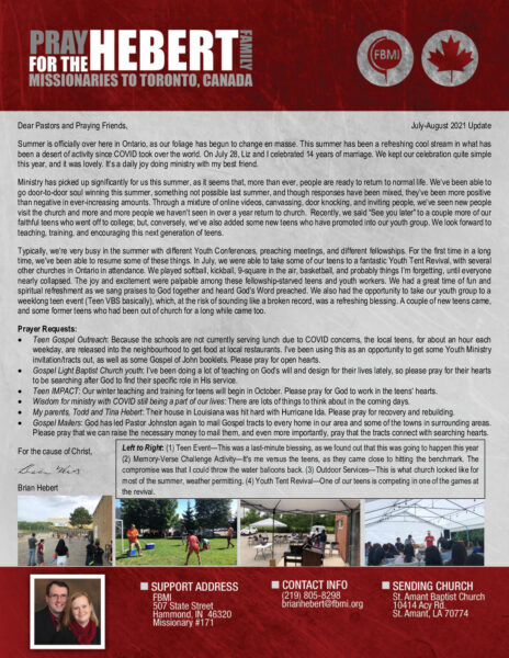 View Larger Image Brian Hebert Jul-Aug 2021 Prayer Letter Proofreader2021-09-15T14:01:01-05:00September 15th, 2021| Share with others. FacebookXLinkedInEmail