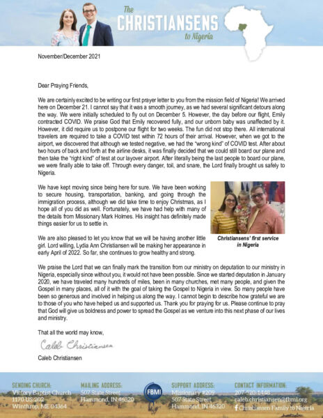 Caleb Christiansen Nov-Dec 2021 Prayer Letter