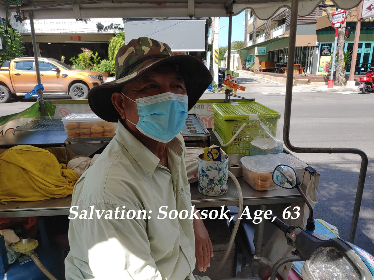 On different days, we came across men fishing. On one occasion, I jokingly told Star, “That man is fishing for fish, and we are fishing for him.” These are empty beaches near fishing hubs. In both cases, the fishermen were saved, having never heard the Gospel before: Jin, age 30, and Nu, age 45. The scenery near the ocean is beautiful, and many stop by to be inspired or refreshed. Such was the case for Saamleet (his name means “3 liter”), age 63, taking a short break from his work. He pulled up on his motorcycle, and 15 minutes later, in the blazing sun, Saamleet trusted Jesus as his Saviour. Sooksok, also age 63, was preparing his motorcycle food cart /“restaurant on wheels” one Friday morning. Sooksok moved to Hua Hin years ago from a faraway province to have a better livelihood. Sooksok was very interested in God’s plan of salvation, was saved, and, with tears in his eyes, asked, “Why has it been so many years until I heard this important truth?” But yet, he was so happy that he now knew the truth of God’s Word. As we left him, he just sat there for several minutes, enjoying the peace, the serenity, and the assurance of knowing Heaven is real and he will go there one day. He was looking for life’s answers, and that morning, the answers were found. Sixteen souls were saved this month out of the Nong Phlap church. Please pray for more of the dear lost people of Thailand to find Jesus.