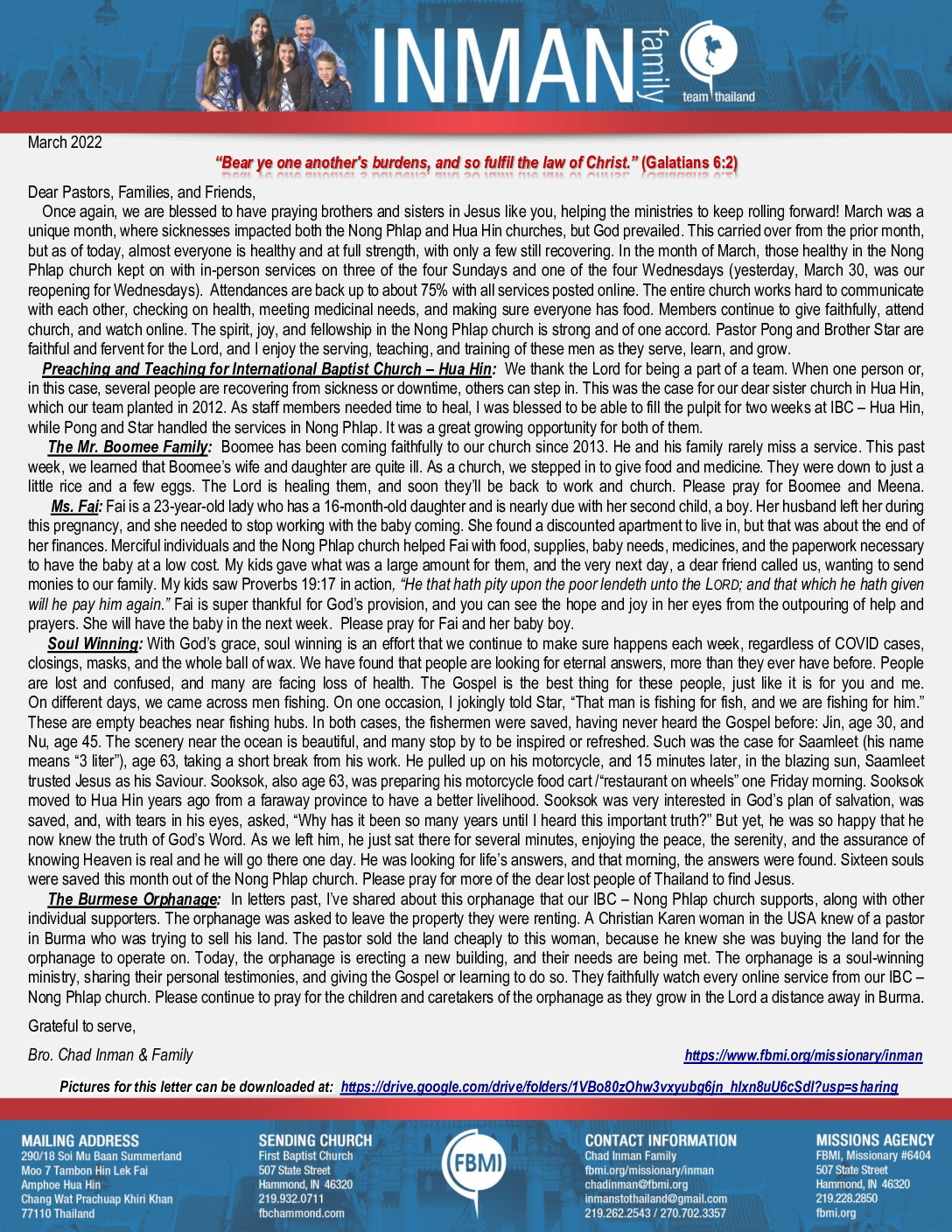 • View Larger Image thumbnail of Chad Inman March 2022 Prayer Letter