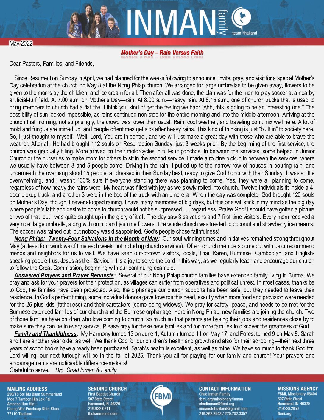 View Larger Image Chad Inman May 2022 Prayer Letter Proofreader2022-06-02T13:50:49-05:00June 2nd, 2022| Share with others. FacebookXLinkedInEmail