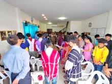 Burmese workers are oftentimes brought over to Thailand to help with construction projects. The pay is usually better in Thailand, and both the workers and their families can be helped by working projects that last anywhere from 3 to 6 months. Only about 10 minutes from the village or subdivision where we live, a new condominium project is being started. The workers live in very temporary shacks on the edge of the project property. As we drove over on a Tuesday morning, we noticed that no work was happening; however, everyone was sitting in their shacks, with no air conditioning, of course, only a fan. We witnessed to several groups, and 13 people were saved. Praise the Lord! However, two problems were happening . . . well, really three. The workers had not been paid for 40 days. Inside the shacks, I noticed cooking equipment but not very much food, maybe just a little stored in old plastic paint buckets. The second problem was that 6 of the people had been brought over from Burma to work a different project, but after paying the agent who was supposed to set them up with work, he left them, not giving them any work at all. These 6 people were living off the folks that had not been paid for 40 days. All that to say, we had a lot of hungry and concerned people in front of us. Thirteen people heard the Gospel and knew for sure they would be going to Heaven, but they were not really sure about food. As a group, we made a donation to the people, giving them a lot of rice and noodles to help them get through the next few weeks. Just a couple of notes on the situation: some of the shacks, as basic as they were, had little, specially built Buddhist shrines in them (statues, candles, incense, flowers – Problem #3). This program did not help them spiritually or physically, as the shrine didn’t answer their prayers. Rather, the God of Heaven, God the Creator, our God helped them to understand the glory of salvation through His Word. Even more, God’s love and mercy were on display with the food donations. They were helped, and so were we. Please pray for these young Christians to grow in the Lord and to have their needs met. The next time I see a new construction project, I will remember how this group needed the Lord and how we are here to help them.
