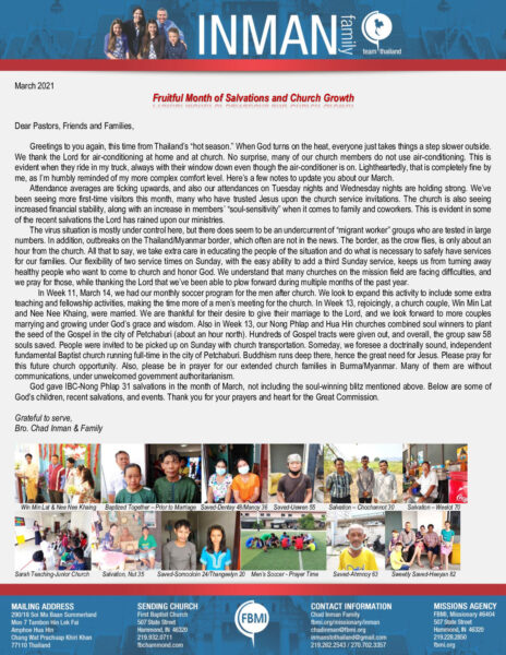 View Larger Image Chad Inman March 2021 Prayer Letter Proofreader2021-03-30T20:19:23-05:00March 30th, 2021| Share with others. FacebookXLinkedInEmail