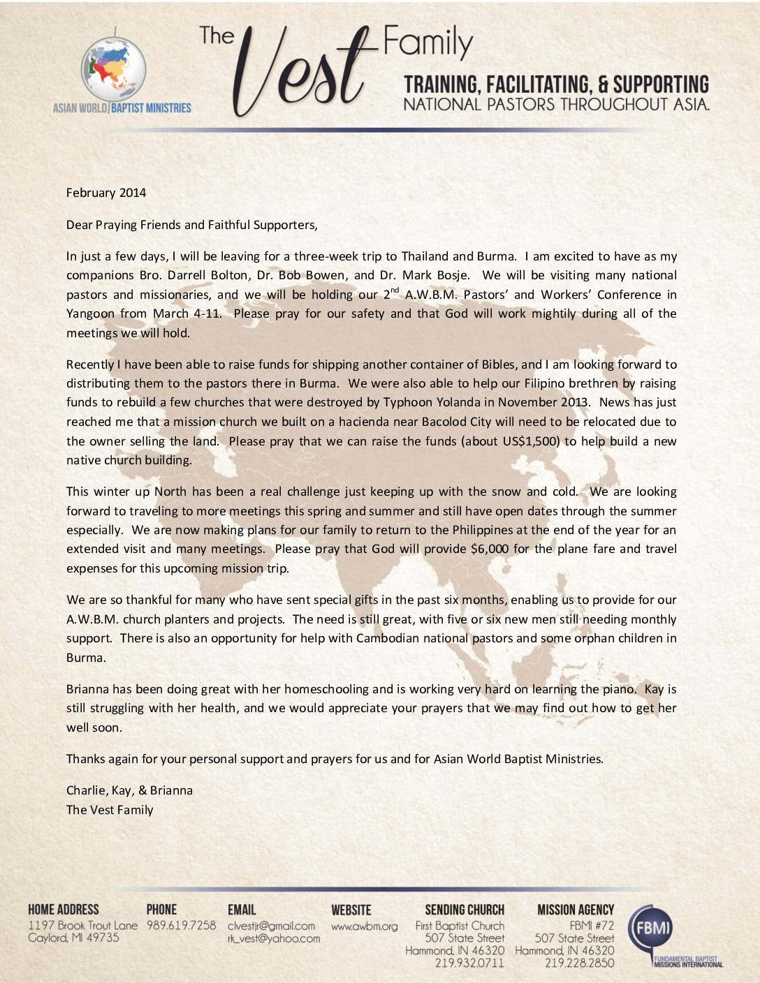 View Larger Image February 2014 Prayer Letter on Letterhead Proofreader2014-02-19T11:21:20-06:00February 19th, 2014| Share with others. FacebookXLinkedInEmail