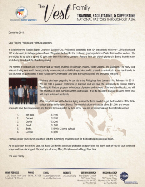 View Larger Image Charlie Vest December 2014 Prayer Letter Proofreader2014-12-15T13:52:15-06:00December 15th, 2014| Share with others. FacebookXLinkedInEmail