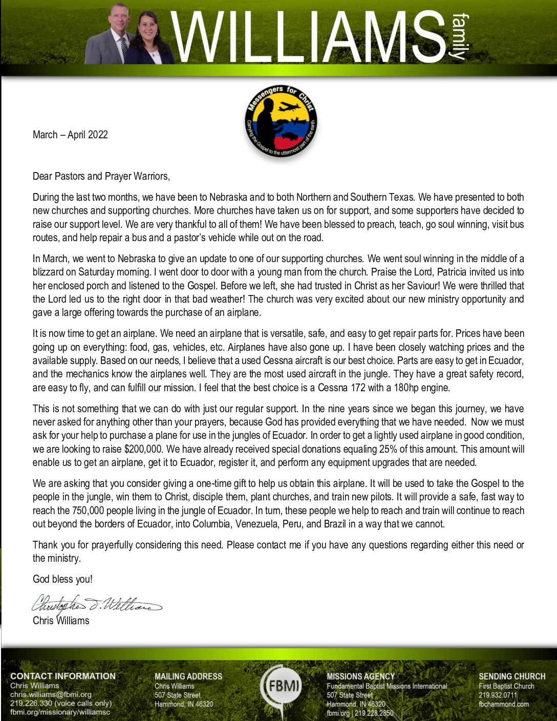 View Larger Image Chris Williams Mar-Apr 2022 ENGLISH Prayer Letter Proofreader2022-05-21T19:52:01-05:00May 21st, 2022| Share with others. FacebookXLinkedInEmail