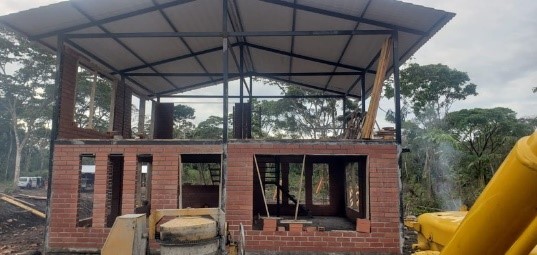 El trabajo de la pista está muy avanzado en la propiedad en Ecuador. Han estado limpiando el terreno, primero a mano, y ahora con equipo pesado que ha limpiado todos los árboles grandes y excavado el suelo donde estará la pista. Luego, traerán grava y arena para reconstruirlo y nivelarlo, después agregarán buena tierra encima para que podamos plantar césped. El edificio de la iglesia y la casa para el pastor de la iglesia están en marcha.