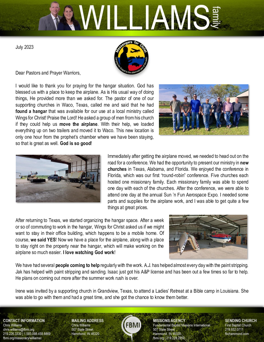 View Larger Image Chris Williams July 2023 ENGLISH Prayer Letter Proofreader2023-07-19T14:59:22-05:00July 19th, 2023| Share with others. FacebookXLinkedInEmail