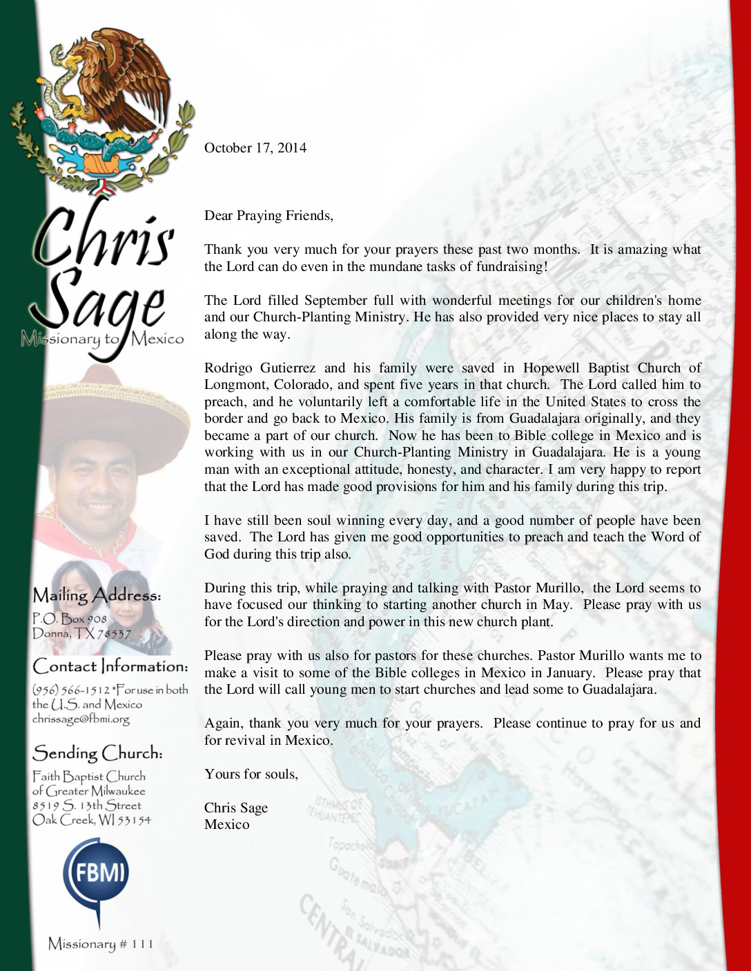 View Larger Image Chris Sage October 2014 Prayer Letter Proofreader2014-11-03T16:29:16-06:00November 3rd, 2014| Share with others. FacebookXLinkedInEmail