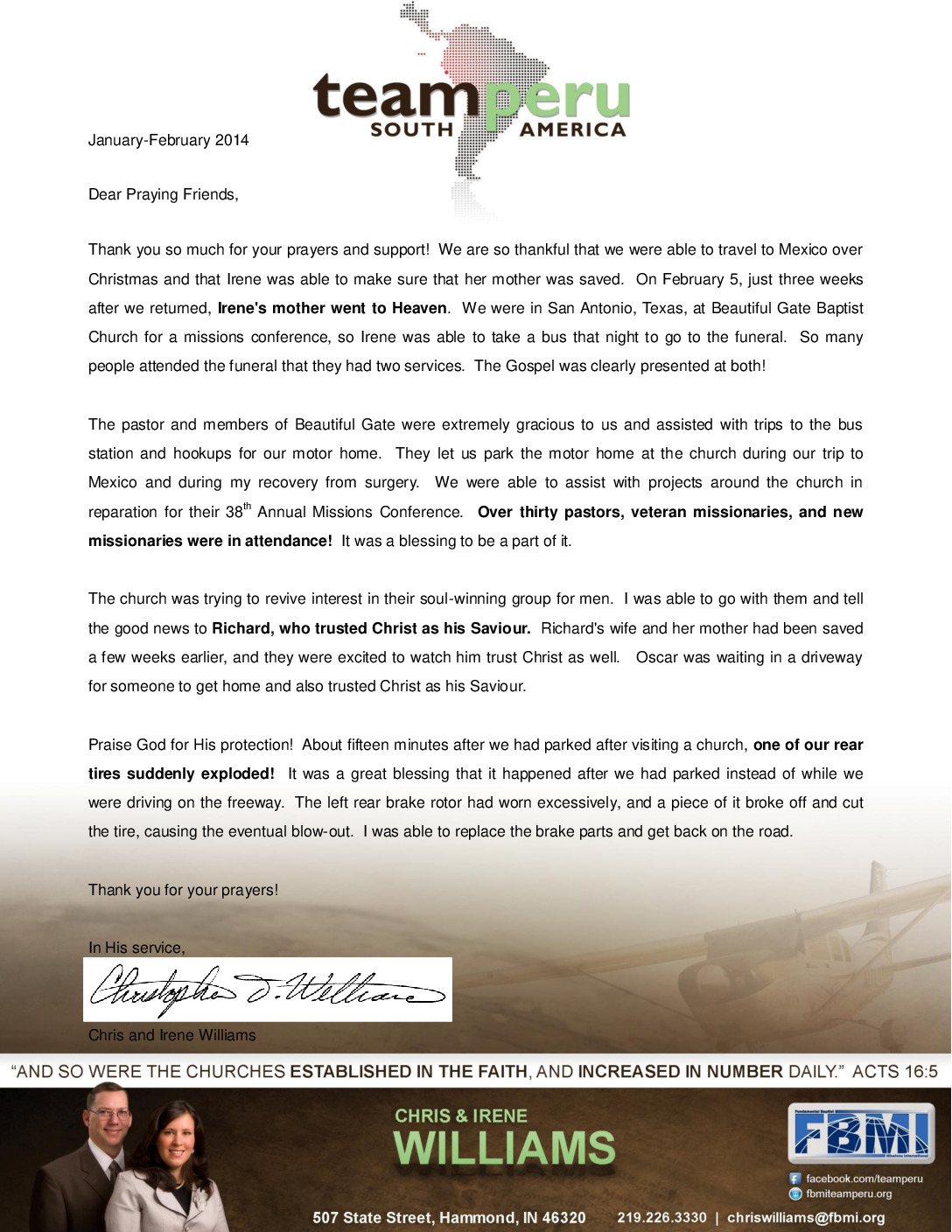 View Larger Image Jan-Feb 2014 Prayer Letter on Letterhead Proofreader2014-03-20T14:21:18-05:00March 20th, 2014| Share with others. FacebookXLinkedInEmail