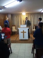 Bro. Foust went on a one-month furlough. While he was gone, we worked on remodeling the auditorium of his church. This included building a new platform, commissioning the construction of a new pulpit, adding nice chairs, adding panels to close off some windows and open spaces to cut down on noise, and rearranging the layout. Bro. Foust knew about the changes before he left, but we kept the pulpit a secret. When he returned, we were able to surprise him with the remodel and his new pulpit. He loves the changes, and so do the people. They had a great time helping with the work.