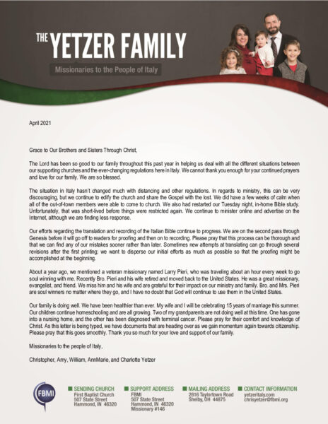 View Larger Image Christopher Yetzer April 2021 Prayer Letter – Revised Proofreader2021-04-07T20:51:01-05:00April 7th, 2021| Share with others. FacebookXLinkedInEmail