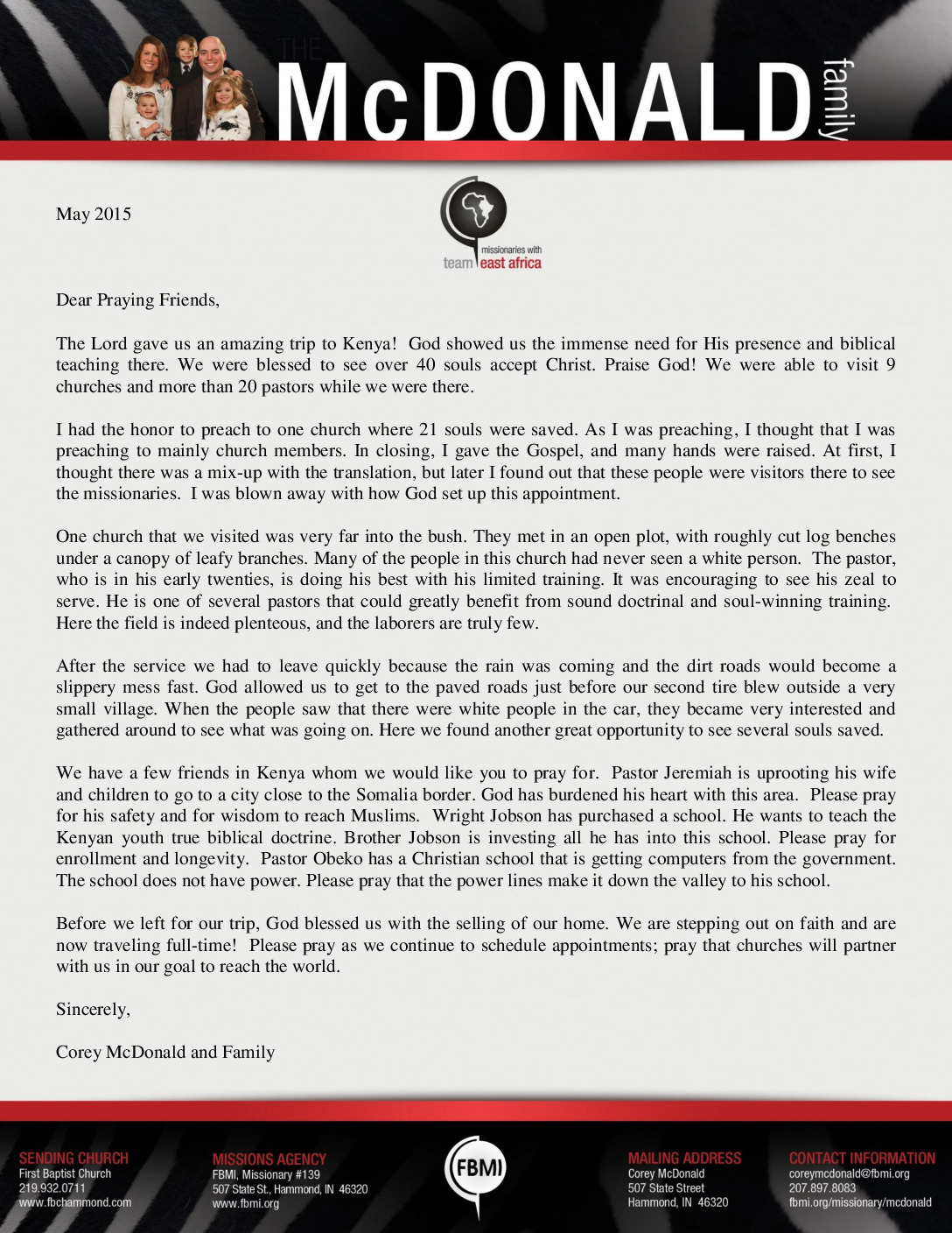 View Larger Image Corey McDonald May 2015 Prayer Letter Proofreader2015-05-13T17:15:24-05:00May 13th, 2015| Share with others. FacebookXLinkedInEmail