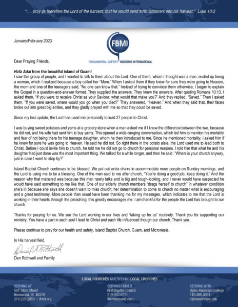 View Larger Image Dan Rothwell Jan-Feb 2023 Prayer Letter Proofreader2023-03-20T19:15:01-05:00March 20th, 2023| Share with others. FacebookXLinkedInEmail