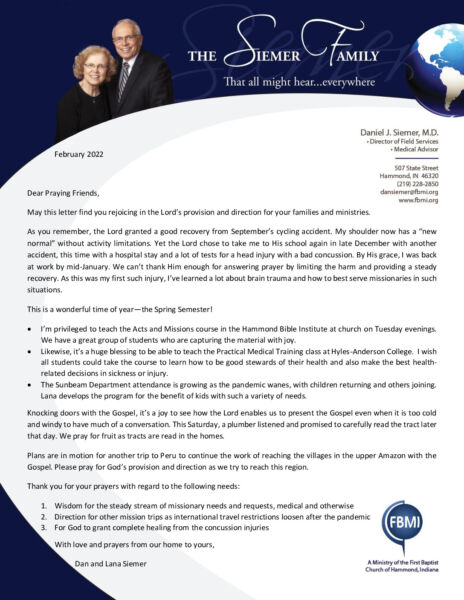 View Larger Image Dan Siemer February 2022 Prayer Letter Proofreader2022-02-21T18:36:15-06:00February 21st, 2022| Share with others. FacebookXLinkedInEmail