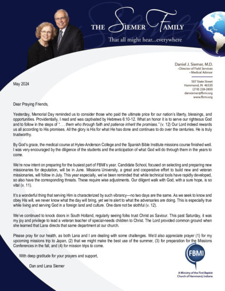 Dan Siemer May 2024 Prayer Letter
