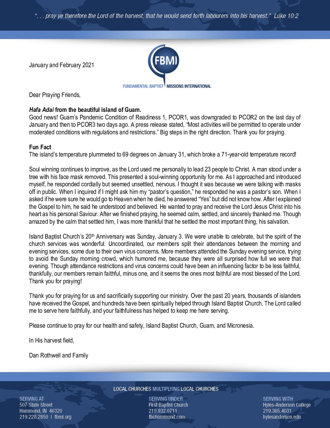 View Larger Image Dan Rothwell Jan-Feb 2021 Prayer Letter Proofreader2021-02-24T16:59:19-06:00February 24th, 2021| Share with others. FacebookXLinkedInEmail