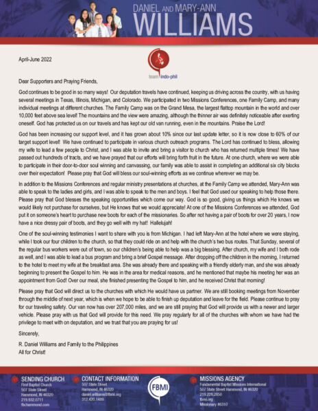 View Larger Image Daniel Williams Apr-Jun 2022 Prayer Letter Proofreader2022-07-10T21:31:44-05:00July 10th, 2022| Share with others. FacebookXLinkedInEmail