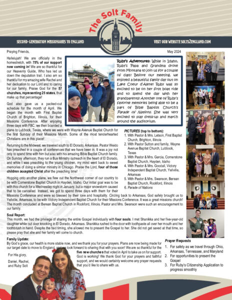 View Larger Image Daniel Solt May 2024 Prayer Letter Proofreader2024-05-09T14:43:33-05:00May 9th, 2024| Share with others. FacebookXLinkedInEmail